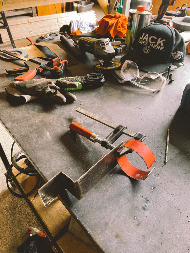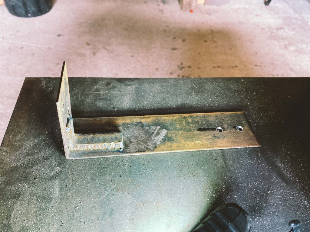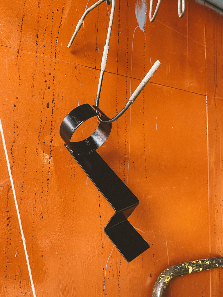 Držák na expanzku jsem udělal jednoduchý, vyztužil ohnutý plech ještě jedním pevným L-kem, vymyslel umístění a pořádně ho přidělal na dva šrouby. Easy, nic složitého, ale drží to také pěkně. Všechno nalakovat na černou, ať to trochu na ty tesco srazy vypadá.