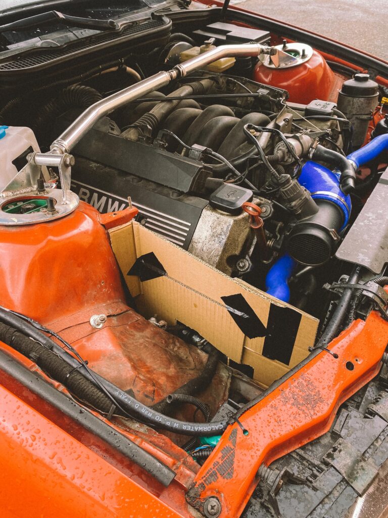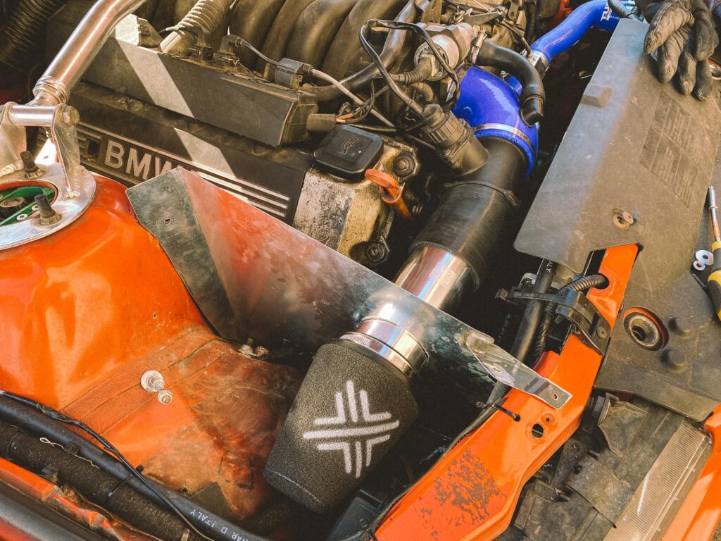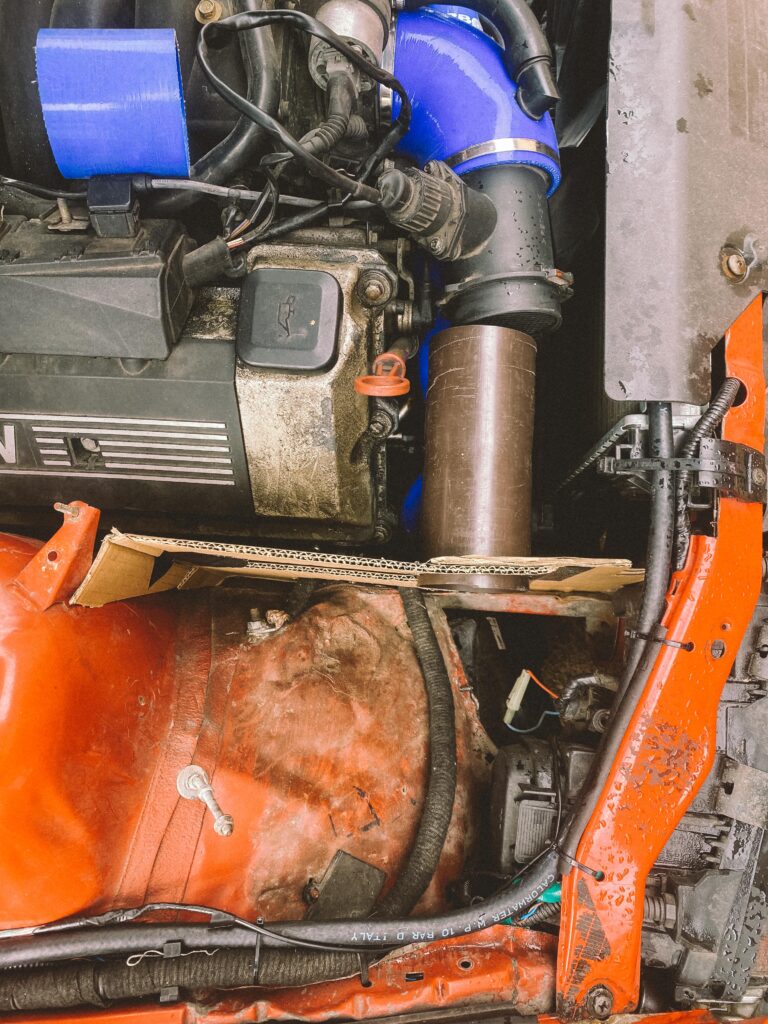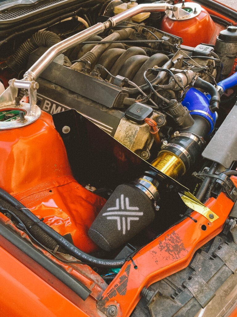 V motorovém prostoru jsem potřeboval vymyslet vzduchový filtr, nějak ho odstínit a pořídit nový, který bude na ideálním místě, kde nenasaje vodu. M60B30 je ideální motor na mokrý smyky. To já rád.