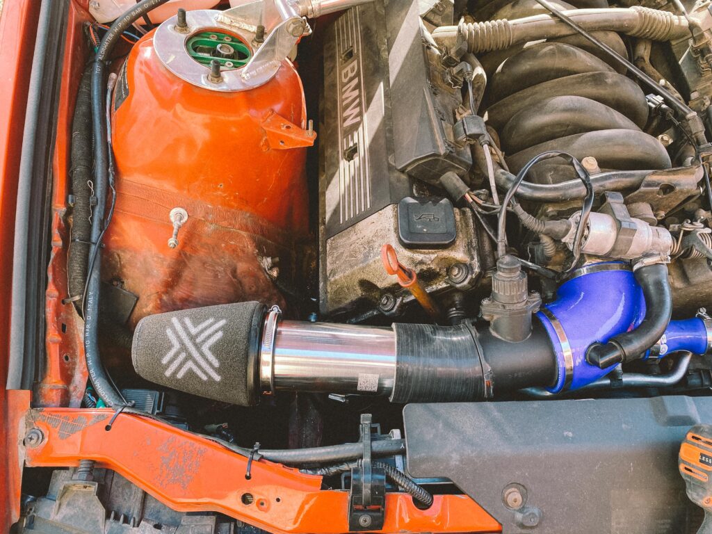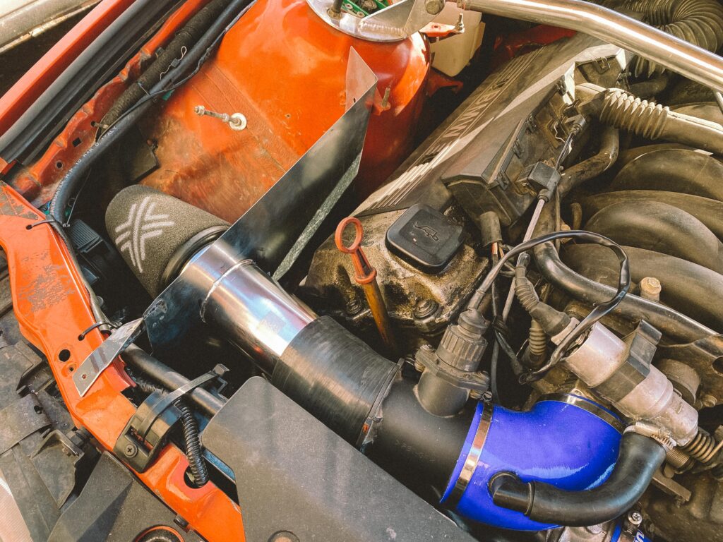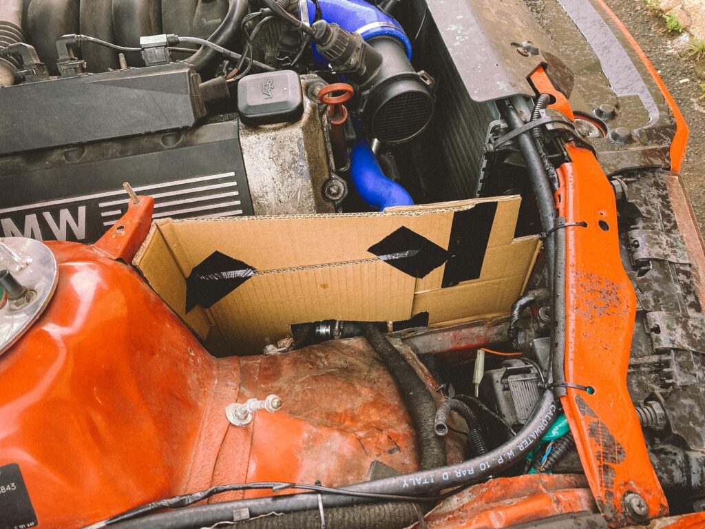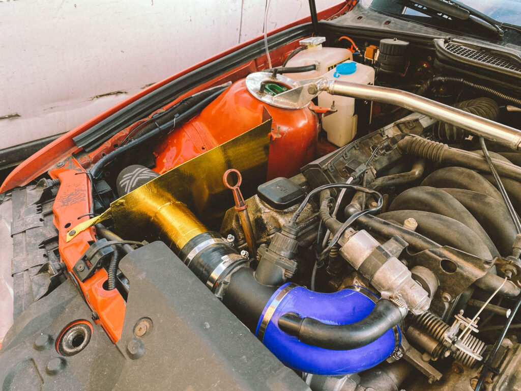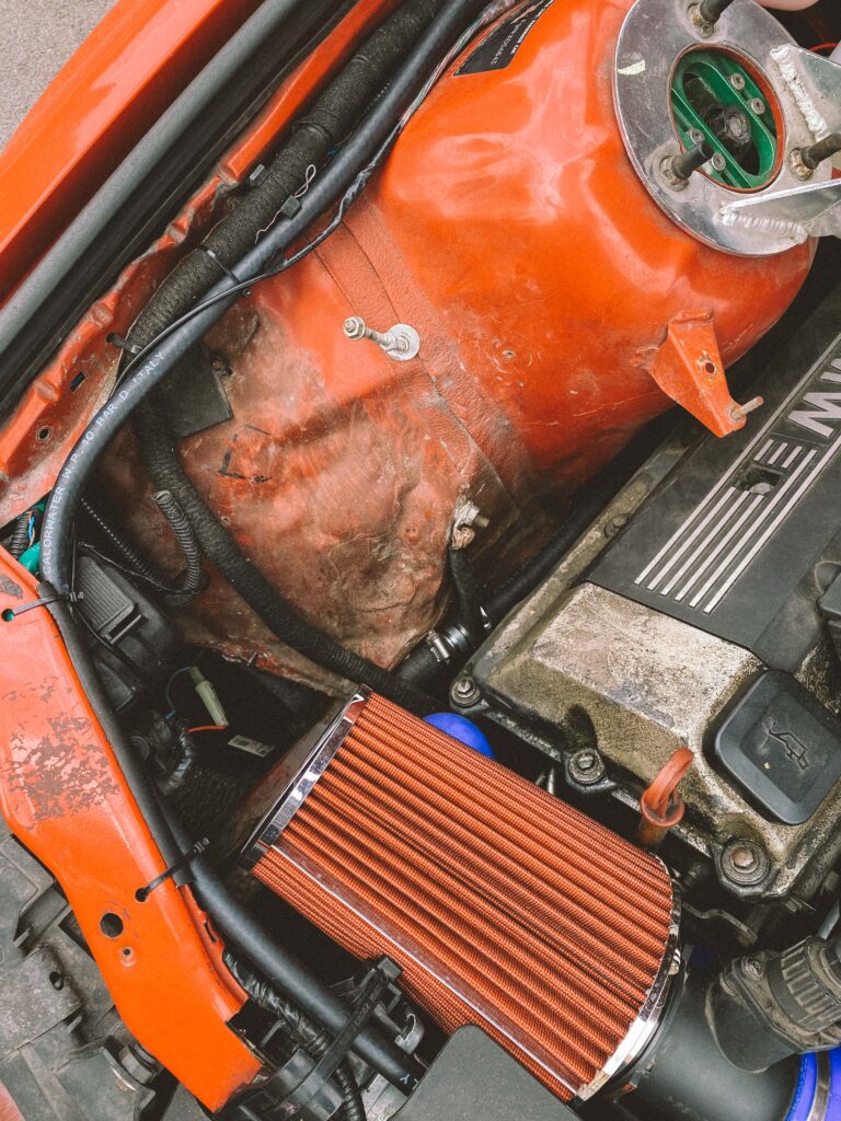 V motorovém prostoru jsem potřeboval vymyslet vzduchový filtr, nějak ho odstínit a pořídit nový, který bude na ideálním místě, kde nenasaje vodu. M60B30 je ideální motor na mokrý smyky. To já rád.