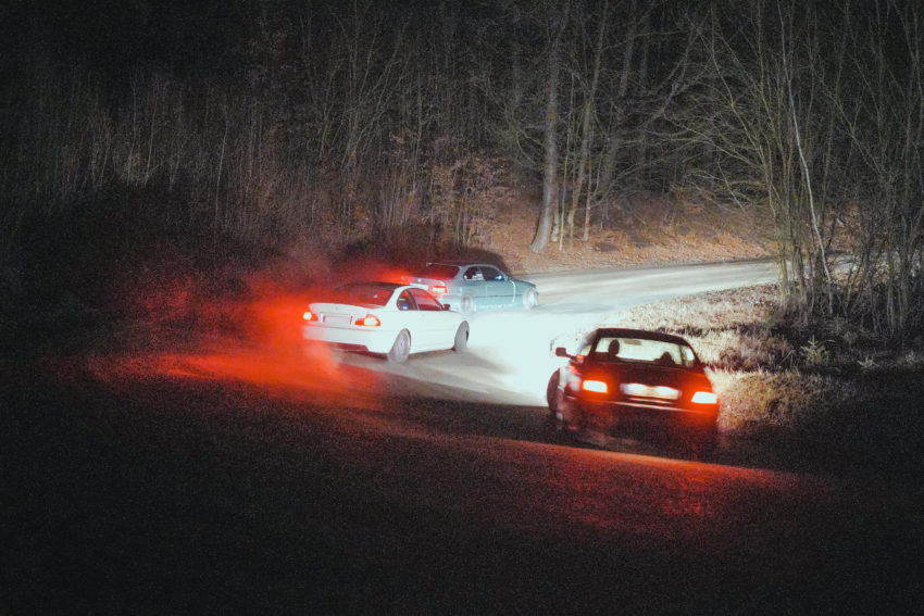 Dnešní síla sociálních sítí je fakt obrovská. Nikoho z kluků jsme vlastně nikdy neviděl osobně ale jsme spolu v kontaktu buď přes FB nebo jen instáč a sledování denních stories. Dostal jsem tedy adresu a jel někam 30 minut za Brno, kde na parkovišti stálá známa E36 DomokunRari, dvě E46 z B-East garage a jeden compact na steroidech s V8. Přišel jsem, řekl „Čus, já sem z Prahy..“, ozvalo se „Zduř, my z Brna pičo“ a hned jsme byli kamarádi.